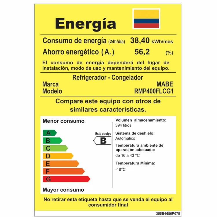 Nevera MABE No Frost Congelador Superior 400 Litro